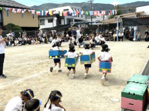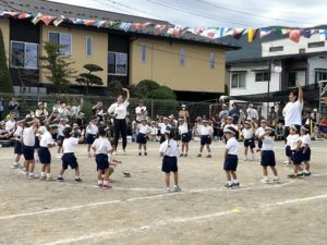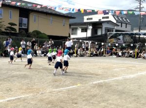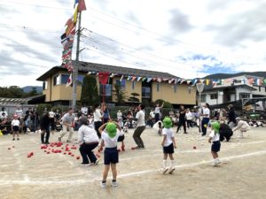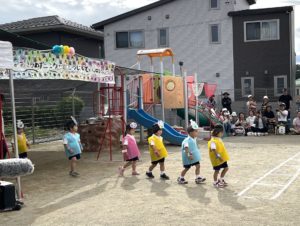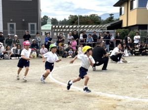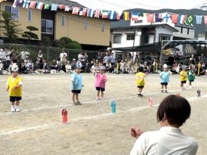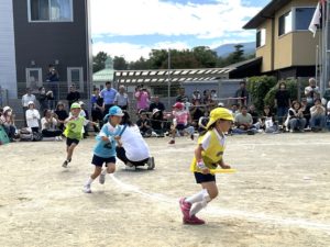 親子競技を楽しんで、年長さんのリレーで締めくくりました
