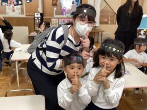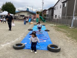 保護者会主催 お楽しみ会 2025年10月03日 今年も保護者会の皆さんが、お楽しみ会を実施してくださいました。 今年のテーマは「ちのせいぼ忍術学園」。 たくさんの忍者修行を考えてくださり、おやこで忍者修行を楽しみました。