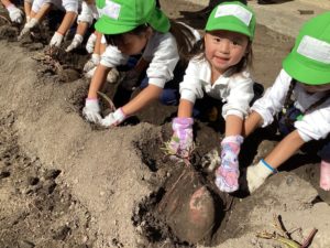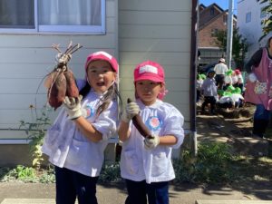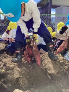 芋ほり 2025年10月08日 春に植えたサツマイモの苗が、ぐんぐん成長し、いよいよ芋ほりです。 今年のお芋は大きくてびっくり。 たくさん収穫できました。 こんなに良い畑を作ってくれた仲町区の皆さんに感謝です。 焼き芋会が楽しみです。