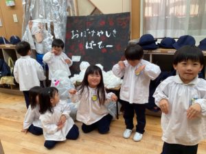 年長のみんなが、お化け屋敷パーティーを開いて、みんなを招待してくれました。