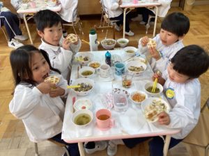 給食で食べたアップルパイのおいしさに、みんな大喜びでした。