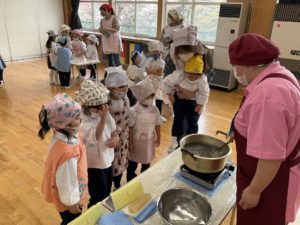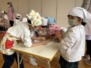 作った寒天ゼリーは給食室で冷やし固め、翌日の給食で食べます。