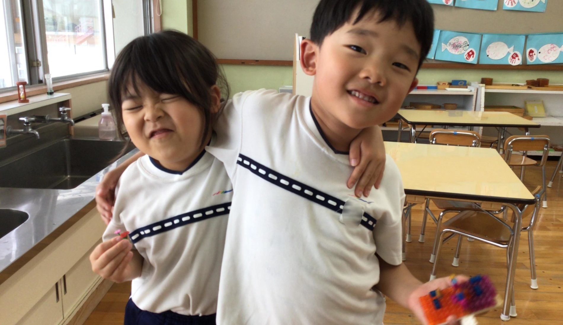 集団生活の中でお互いを認めあい、助け合い社会性を育てることを目的として、クラス編成は3・4・5歳の縦割りクラスとしています。 家庭的な雰囲気の中、年少児は年上の友達の姿を見て学び、年長児は年下の友達を助ける等のかかわりを通して自信を身につけ、思いやりや優しさのある豊かな心を育みます。