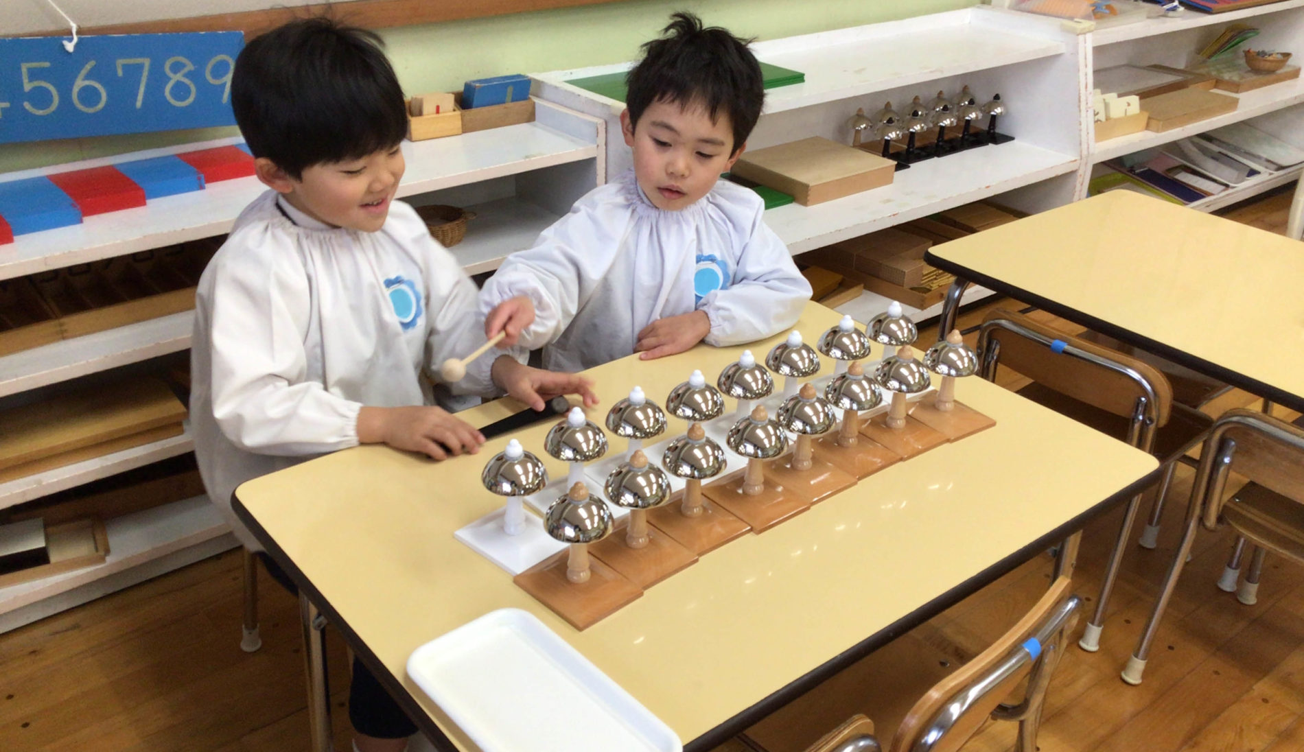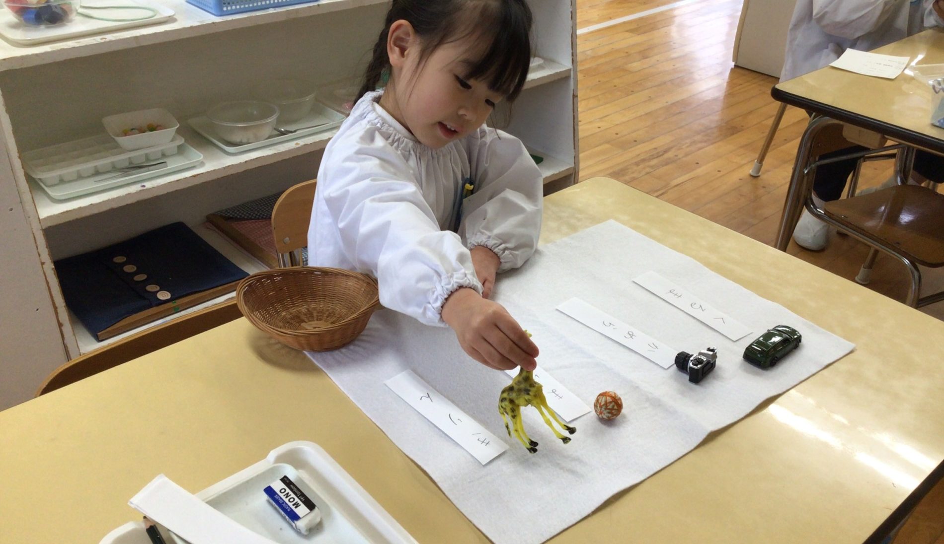 自分の興味関心のある教具を選び、自主的に取り組みます。